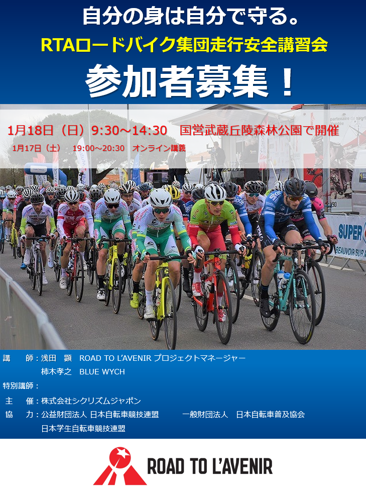 【自分の身は自分で守る!】1月18日(日)『RTAロードバイク集団走行安全講習会』参加選手募集中!